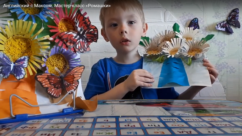 Ваши малыши вместе с Максом создадут летнюю объемную аппликацию из доступных всем материалов. Для работы понадобятся: 3 втулки от туалетной бумаги, цветная бумага, ножницы, клей и пшено. С помощью, полученной картины, ребята смогут повторить пройденный материал: цвета, счет, выполнение простых просьб на английском языке.