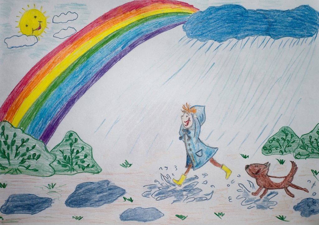 III место – Ковалева Анна, рисунок «Бегом по лужам», 7 лет, г. Мурманск