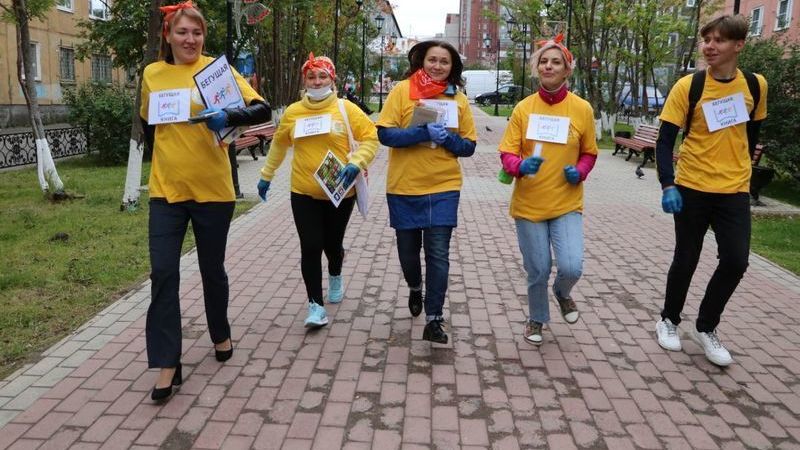 Библиотекари и волонтеры Мурманской областной детско-юношеской библиотеки имени В. П. Махаевой совместно с сотрудниками Информационного центра по атомной энергии (ИЦАЭ) г. Мурманска отправились по заранее разработанным маршрутам, которые проходили по улицам, площадям, аллеям, скверам и паркам.