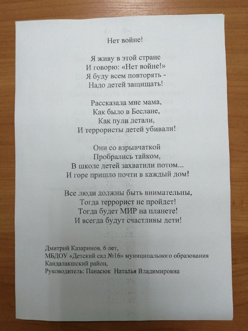 3 место Казаринов Дмитрий, МБДОУ «Детский сад №16» муниципального образования Кандалакшский район (руководитель: Панасюк Наталья Владимировна).