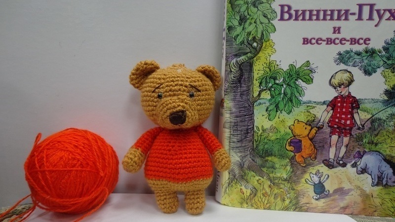 Сегодня под руководством библиотекаря будем вязать маленького симпатичного медведя! Для работы понадобится крючок, нитки разных цветов, наполнитель и чуть-чуть терпения.