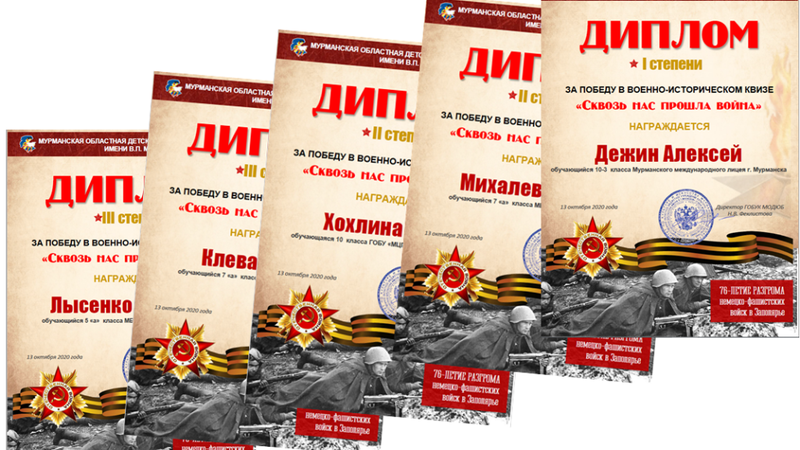 В рамках празднования 76-ой годовщины разгрома немецко-фашистских войск в Заполярье отдел краеведческой литературы Мурманской областной детско-юношеской библиотеки имени В. П. Махаевой совместно с Мурманским региональным отделением партии «Единая Россия» провели военно-исторический квиз «Сквозь нас прошла война».