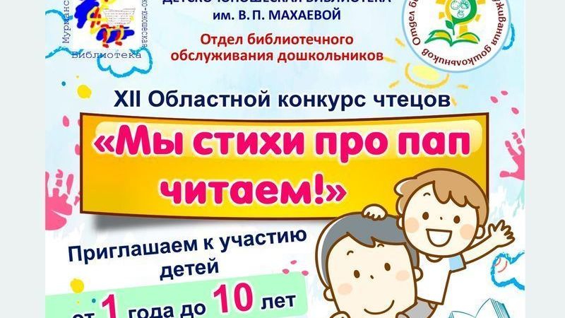 Мурманская областная детско-юношеская библиотека имени В. П. Махаевой приглашает принять участие в Областном конкурсе чтецов «Мы стихи про пап читаем» дошкольников, их родителей, детей школьного возраста до 10 лет включительно и специалистов образовательных учреждений.