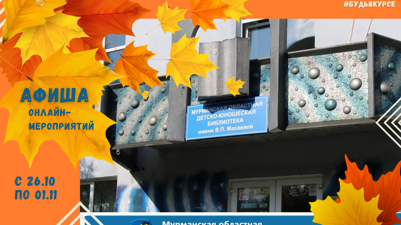 Дорогие читатели Областной детско-юношеской библиотеки имени В. П. Махаевой! Предлагаем ознакомиться с программой онлайн-мероприятий с 26 октября по 1 ноября, которые будут размещены на сайте во вкладке «Новости»