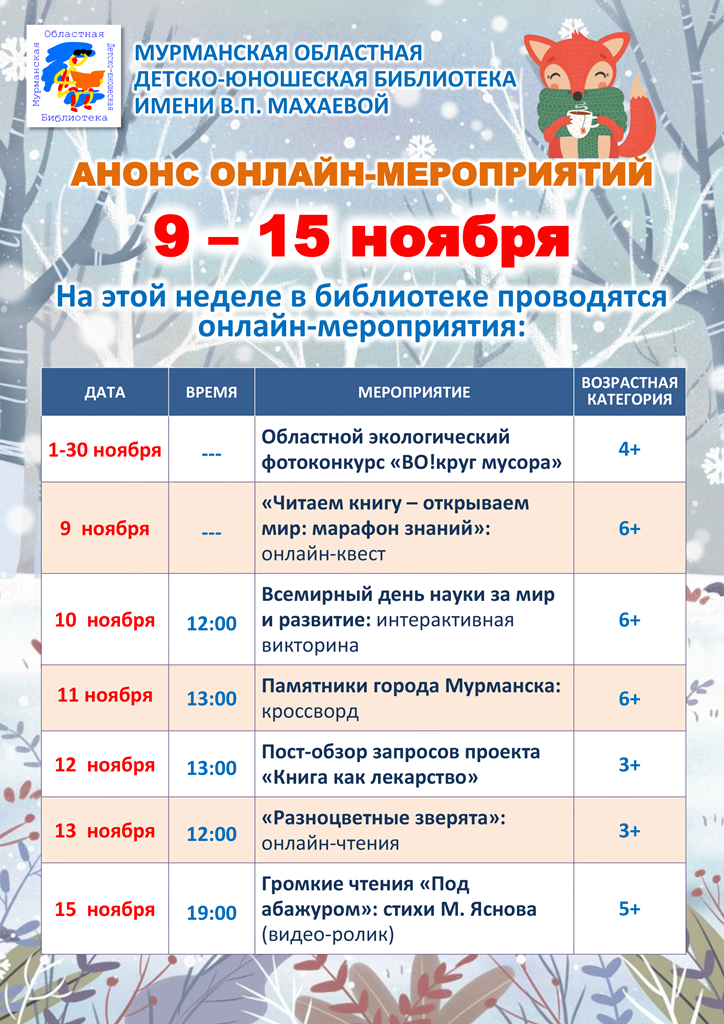 Дорогие посетители, знакомьтесь с программой онлайн-мероприятий с 9 по 15 ноября