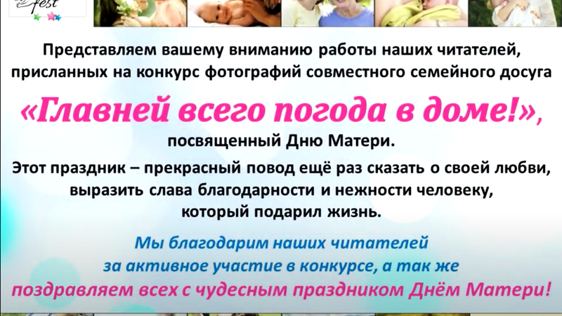 Представляем вашему вниманию работы, присланные на конкурс фотографий совместного семейного досуга «Главней всего погода в доме!», посвященный Дню Матери