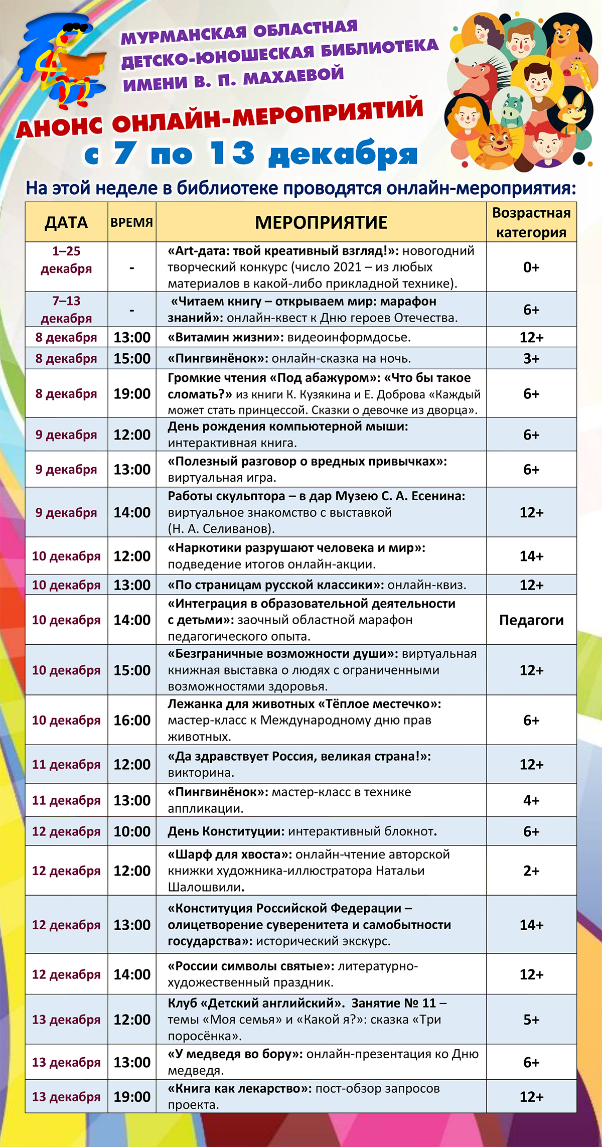 Дорогие посетители, знакомьтесь с программой онлайн-мероприятий с 7 по 13 декабря