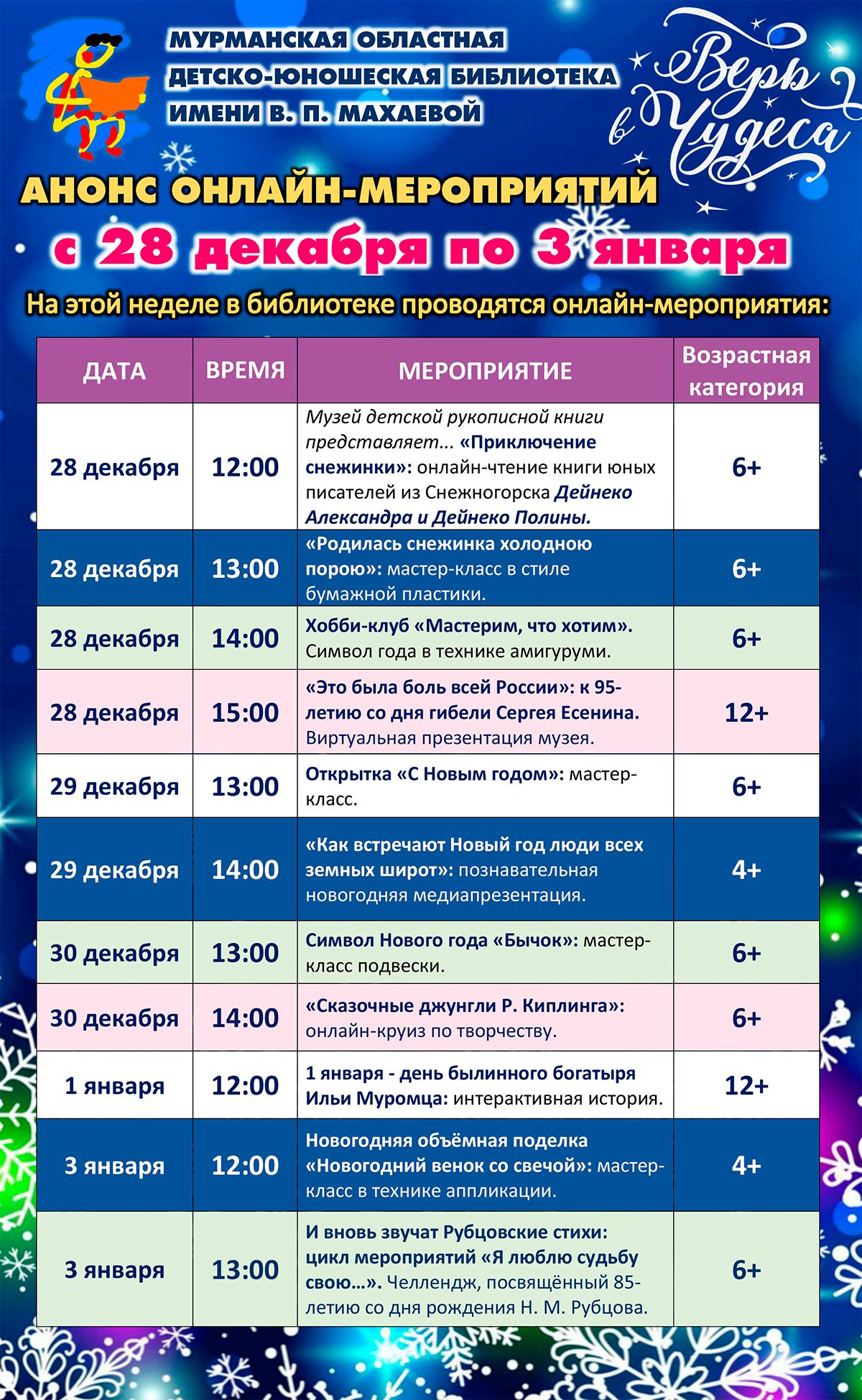 Дорогие посетители, знакомьтесь с программой онлайн-мероприятий с 28 декабря по 3 января