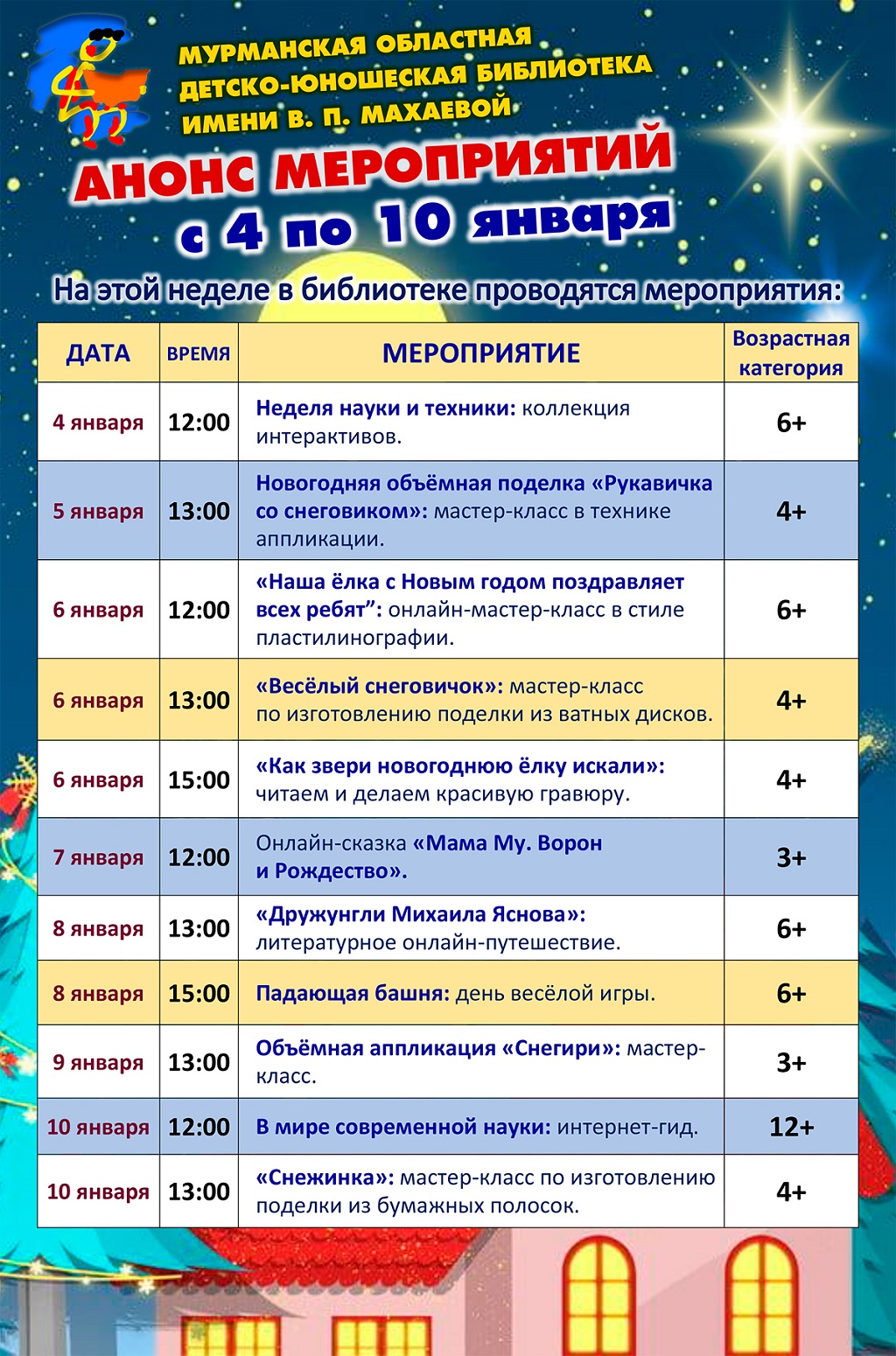 Дорогие посетители, знакомьтесь с программой онлайн-мероприятий с 4 по 10 января
