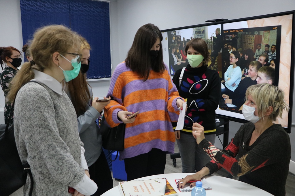 На встрече присутствовали учащиеся 10-11 классов, специалисты детских библиотек Мурманска и сотрудники Мурманской областной детско-юношеской библиотеки имени В. П. Махаевой. Участники встречи поговорили об отличиях между европейской и отечественной литературой для детей и подростков, о важности и ценности классической литературы, а также о произведениях современных авторов.