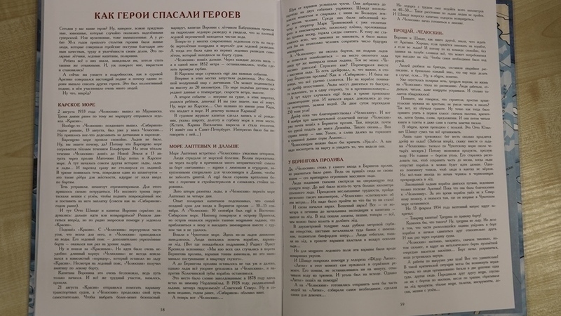Вступительные и заключительные статьи «Поговорим о «Челюскине» и «Как герои спасали героев» написал Олег Бундур. Он дополнил героическую канву комикса интереснейшими подробностями об экспедиции и её главных участниках.