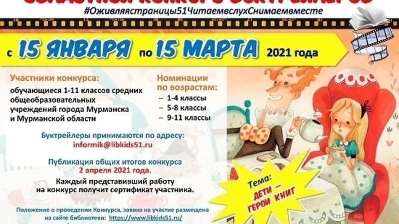 Заявки на участие в конкурсе принимаются с 15 января 2021 года по 15 марта 2021 года по адресу: informik@libkids51.ru