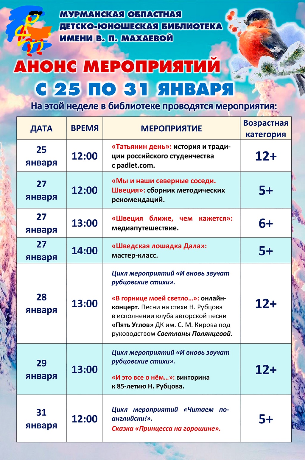 Дорогие посетители, знакомьтесь с программой онлайн-мероприятий с 25 по 31 января