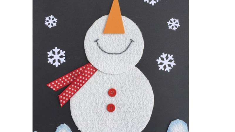Библиотекарь центра покажет, как с помощью бумаги, картона, клея, ножниц и веселого творческого настроения можно сделать красивую открытку. На ней изображен веселый снеговик с красным шарфиком.