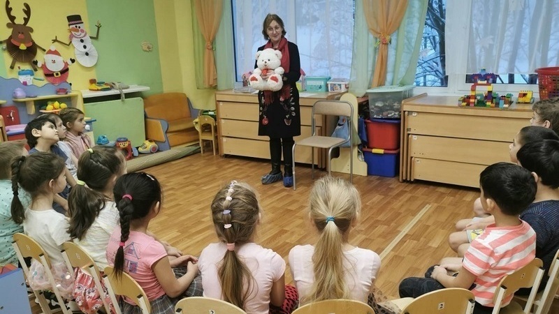 Белый медвежонок, который пришел в гости к ребятам вместе с библиотекарем, оставил книжки и журналы с яркими картинками и вручил приглашения на интересные мастер-классы в центре чтения «Читай и познавай».