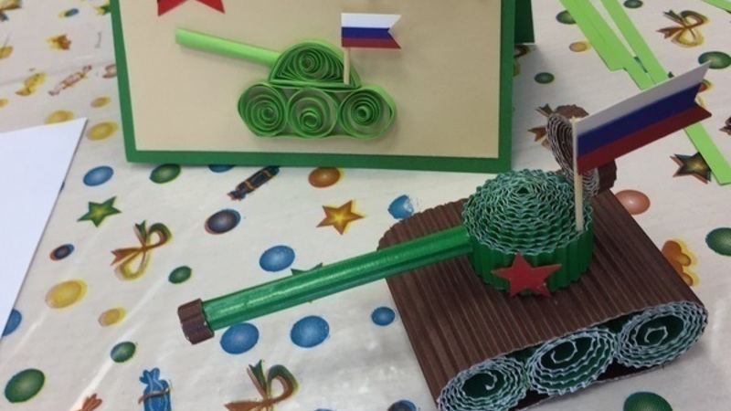 Сотрудник центра покажет, как с помощью узеньких бумажных полосок сделать красивую открытку на которой изображен танк. А на второй половинке открытки каждый участник мастер-класса сможет написать свое поздравление.