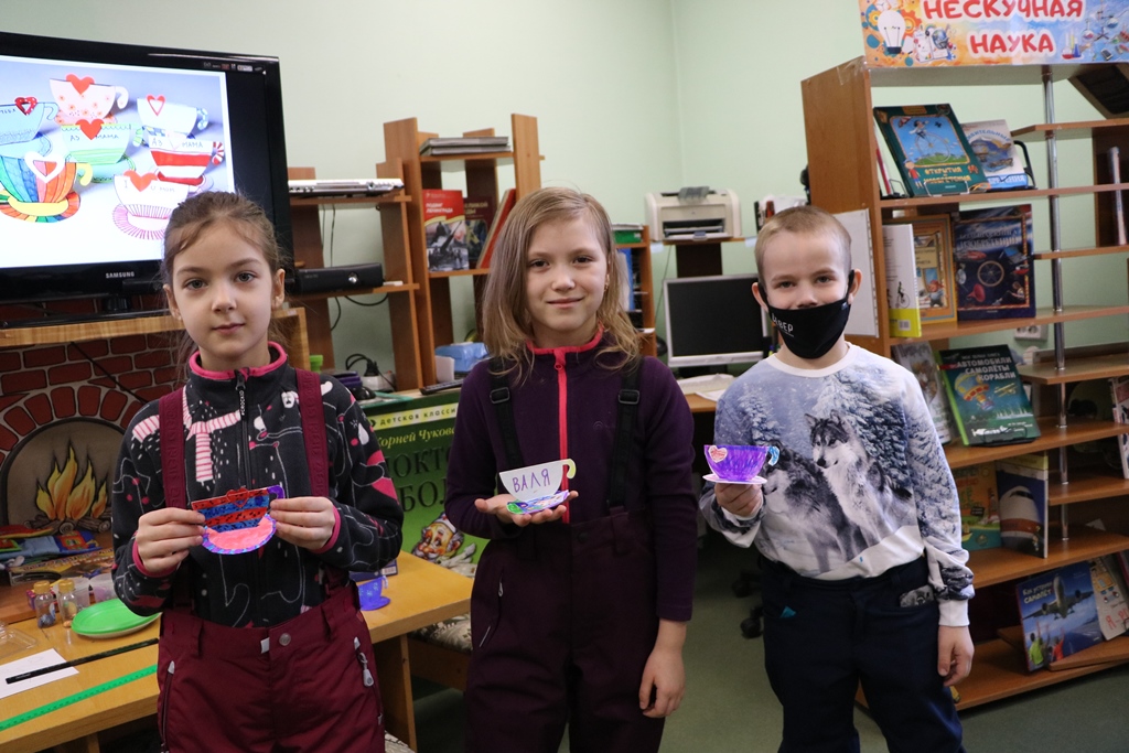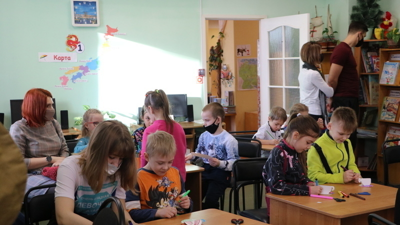 В читальном зале отдела, под руководством сотрудника, ребята смастерили подарок для мамы в технике бумагопластики.