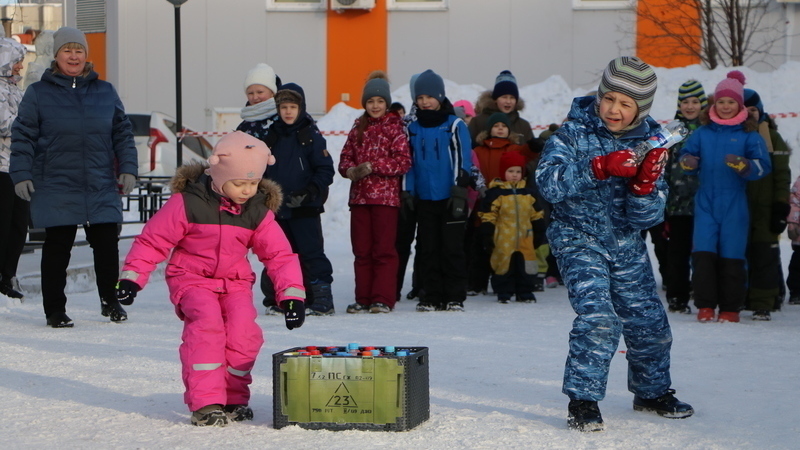 Перед началом эстафет, как положено солдатам, было проведено построение и веселая военная зарядка. Курс молодого бойца начался с разминирования полигона.