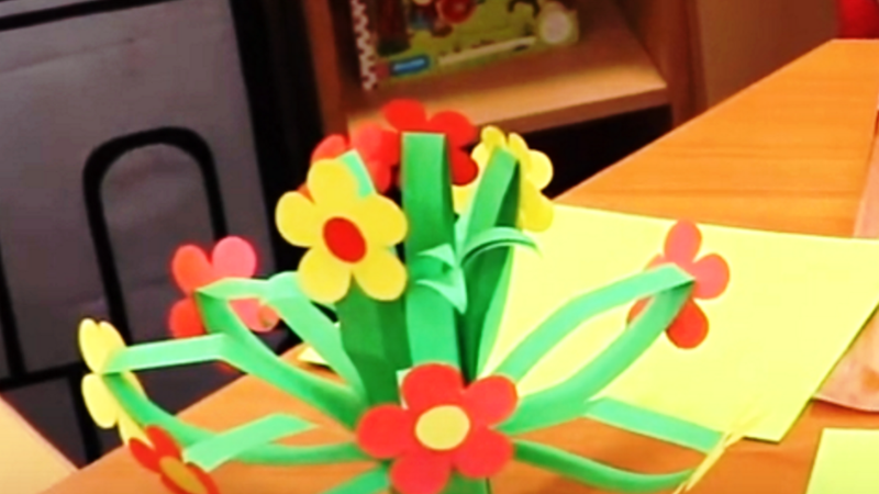 Дети научатся делать замечательный подарок для своих мам к празднику 8 марта – яркие букеты из разноцветных цветов в технике аппликации. К процессу создания букета могут активно подключиться и папы.
