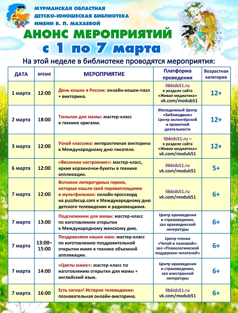 Дорогие посетители, знакомьтесь с программой мероприятий с 1 по 7 марта