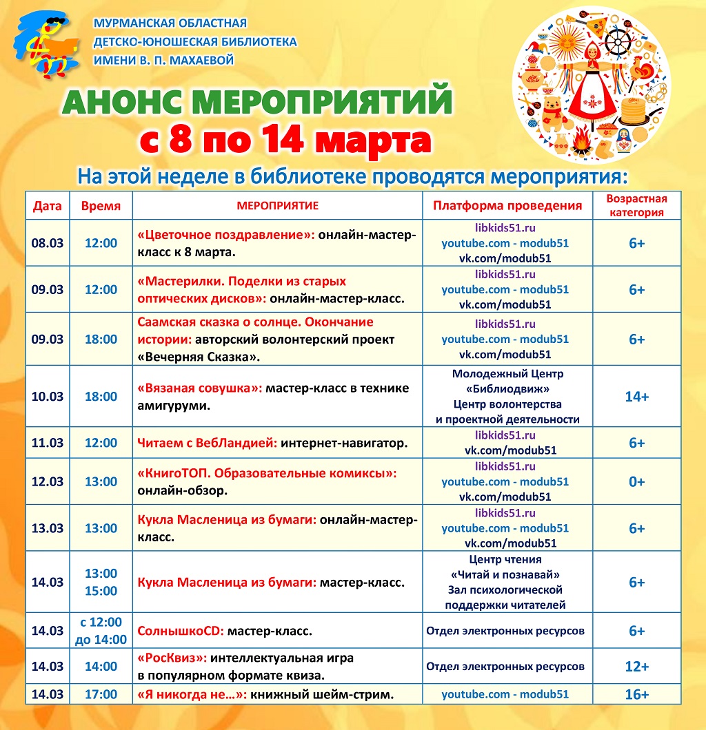Дорогие посетители, знакомьтесь с программой мероприятий с 8 по 14 марта