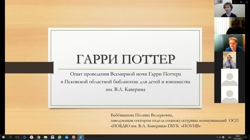 Специалисты Мурманской областной детско-юношеской библиотеки имени В.П. Махаевой и Псковской областной библиотеки для детей и юношества имени В. А. Каверина нашли профессиональные точки соприкосновения – каждая из библиотек проводит крупные мероприятия, посвященные Гарри Поттеру и его вселенной. Полина Валерьевна Бабёнышева, заведующая сектором отдела социокультурных коммуникаций ОСП ПОБДЮ им. В.А. Каверина, рассказала, как в 2020 и 2021 году проходила Всемирная ночь Гарри Поттера для юных псковичей. Даже в условиях ограничения культурно-массовой деятельности находчивые библиотекари придумали, как порадовать своих читателей встречей с любимой вселенной!