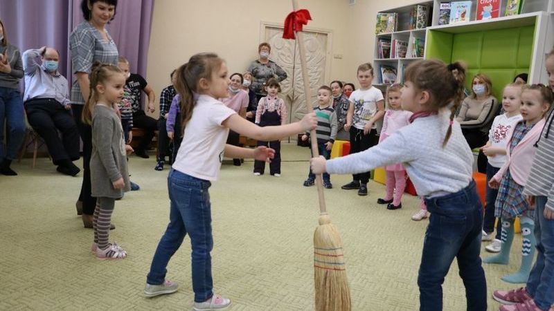 Маленькие читатели с удовольствием поиграли с Бабой-ягой в забавную игру «Крутая метла», приняли участие в смешной эстафете «Реактивный веник» и в музыкальных физкультминутках «Домик Бабы-яги» и «Гуси-лебеди».