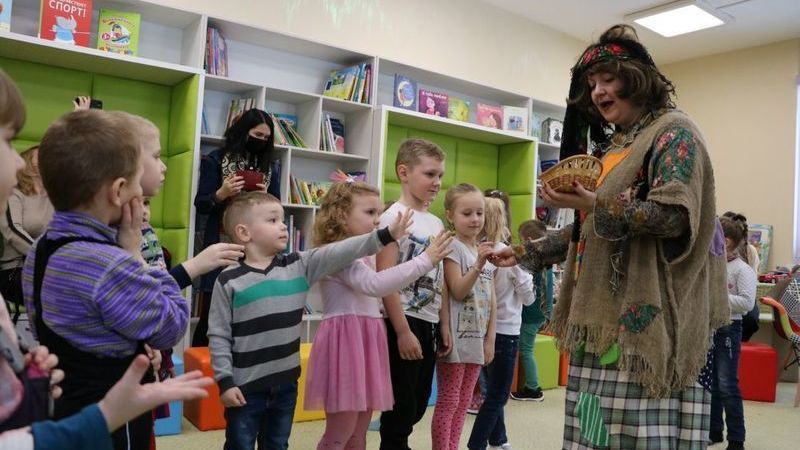 После задорного приветствия ведущий рассказал гостям историю появления праздника книжных именин. Дети с восторгом встретили Бабу-ягу и рассказали ей, для чего нужны книжки, а она научила ребят показывать сказки.