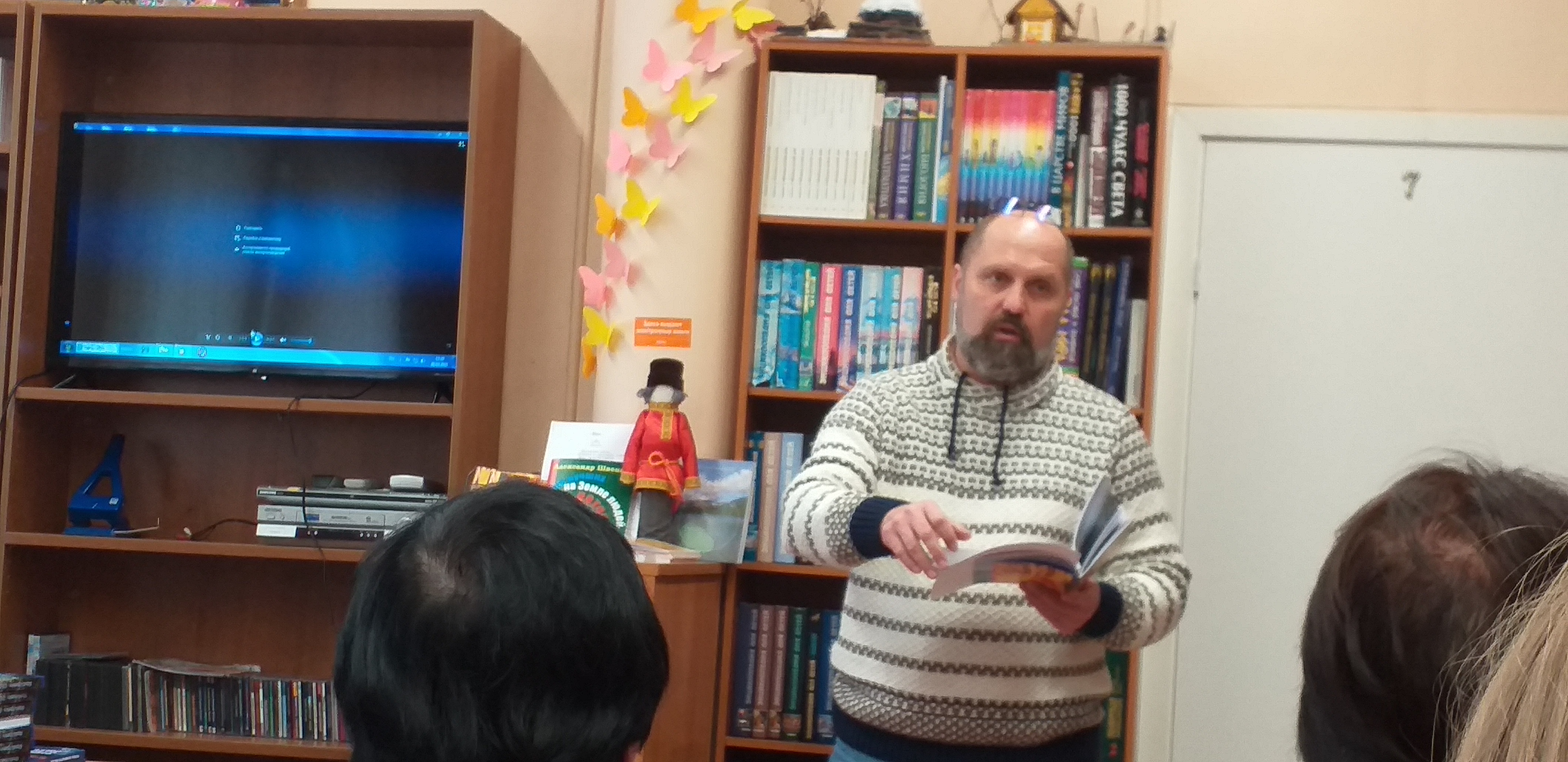 Любимец публики Дмитрий Коржов познакомил с книгами «Площадь первоучителей. Вып.20», «Отсюда начинается Россия…», «Север объединяет». Во всех изданиях Дмитрий Валерьевич является составителем издания. Дмитрий читал стихи, рассказывал много интересного из литературной жизни писателей. На встречу приехали поэт Дмитриев Михаил Юрьевич из Ковдора и писатель и краевед из Зеленоборского Станислав Федорович Бородкин.