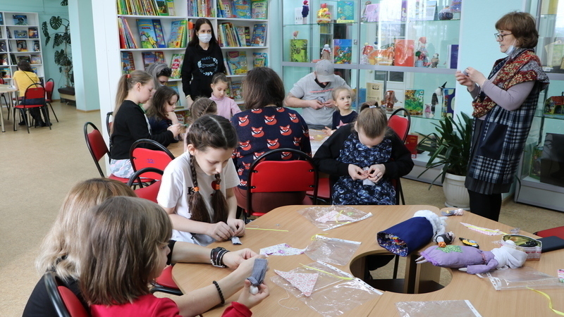 В зале «Мир необыкновенных книг и творчества» была открыта мастерская по изготовлению рукотворной игрушки «Кукла Бусинка».