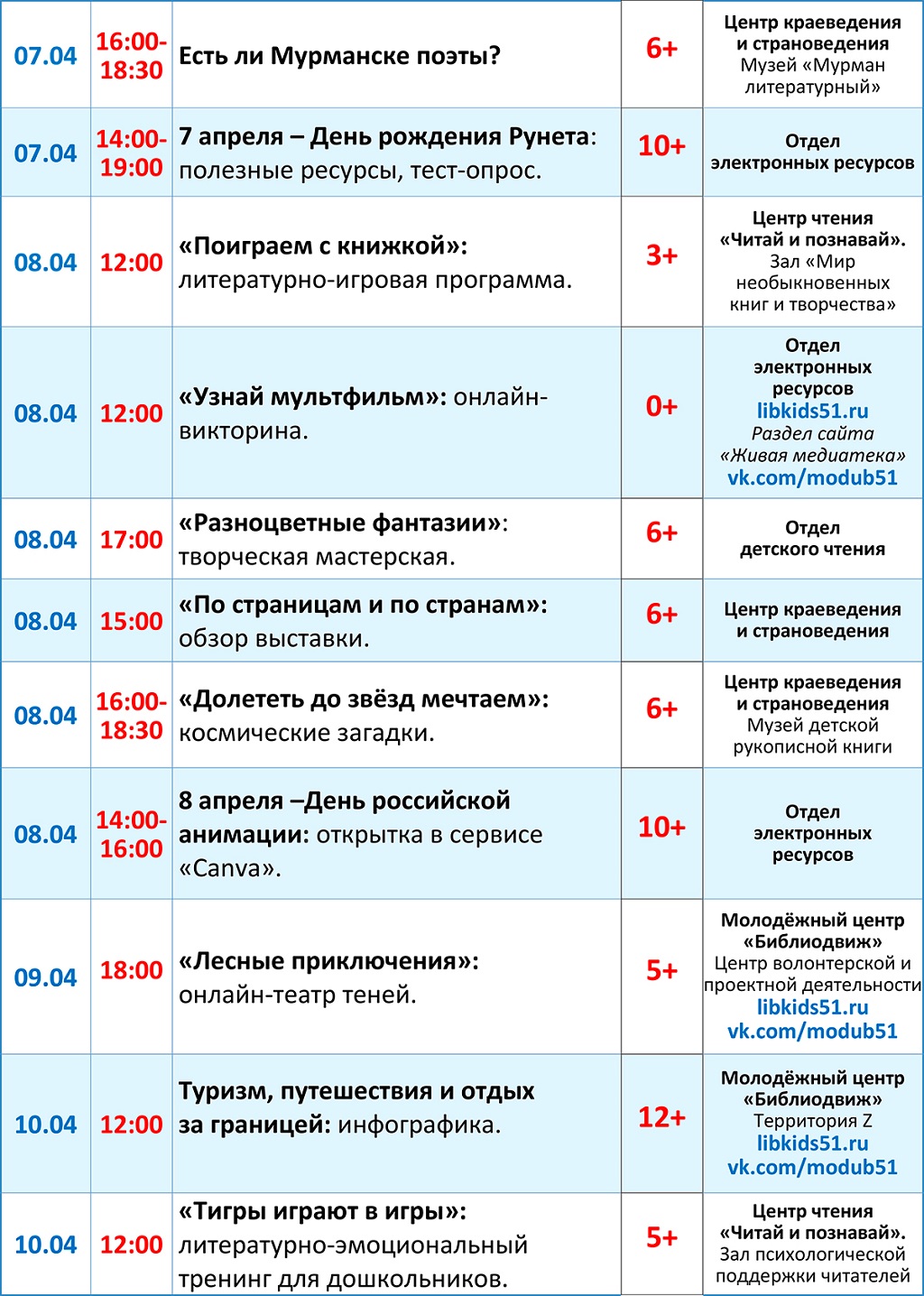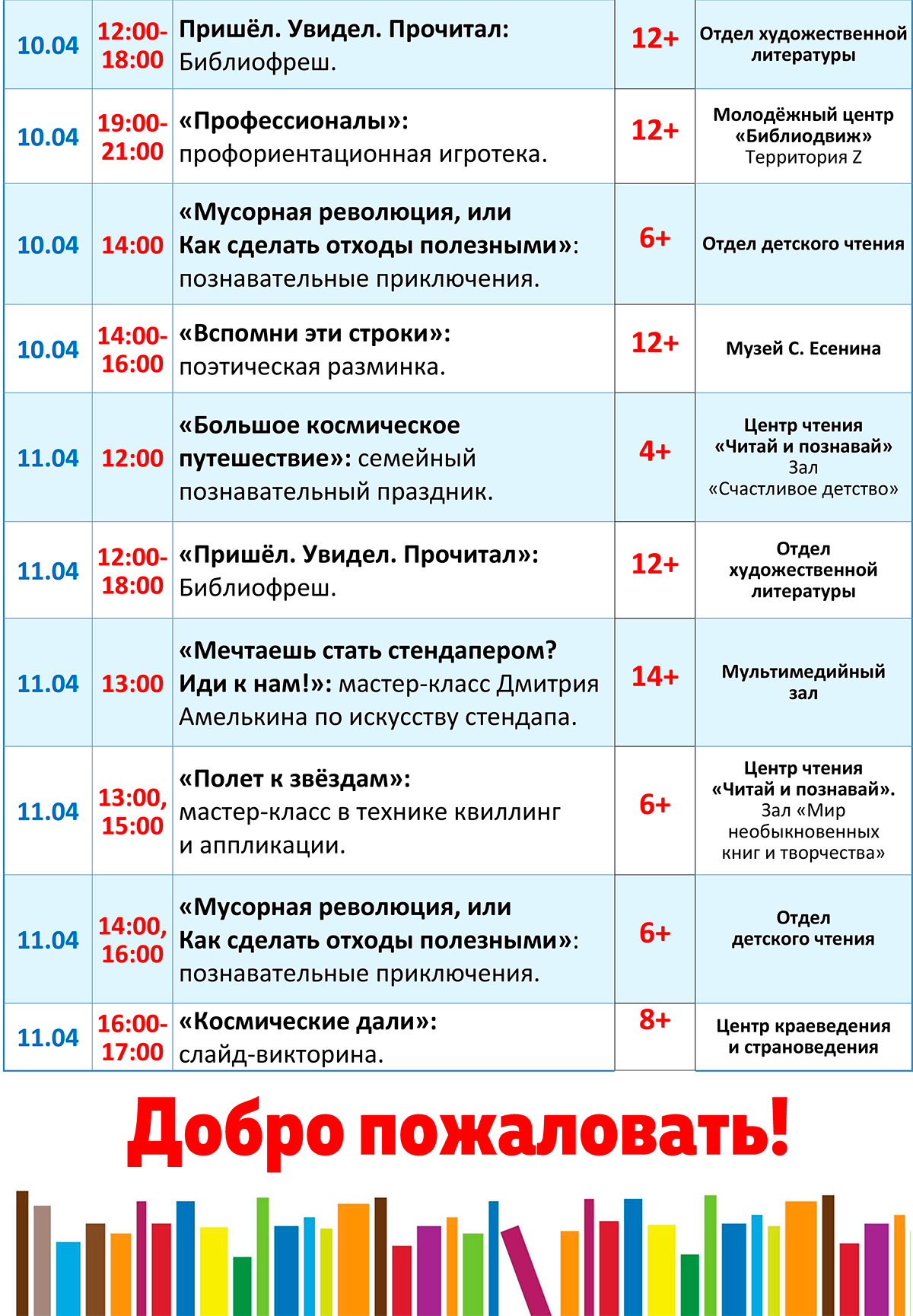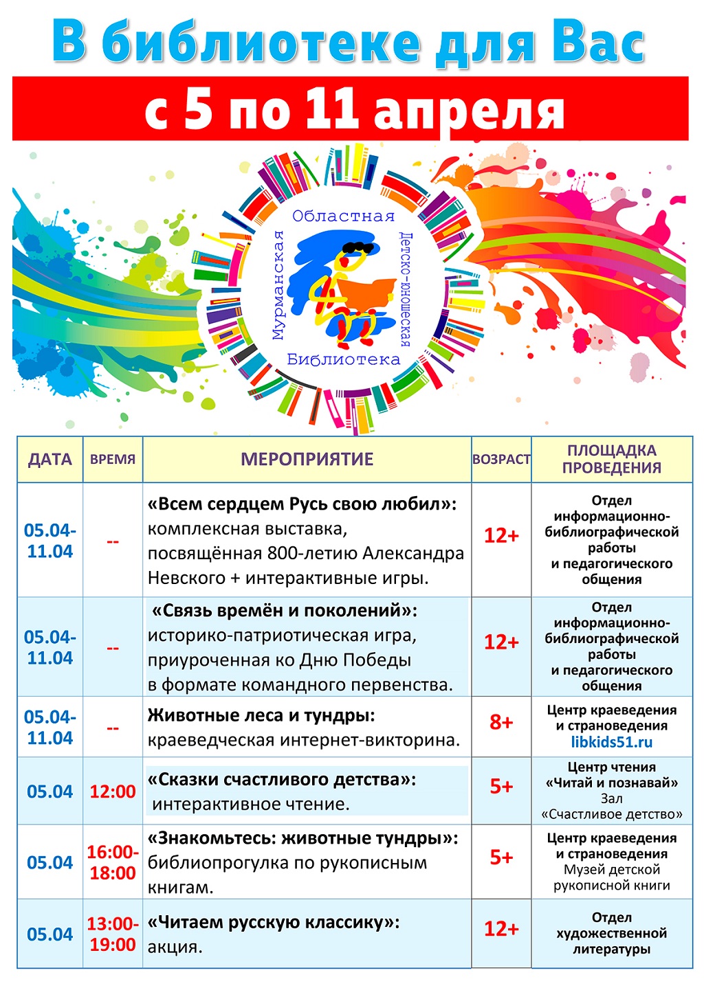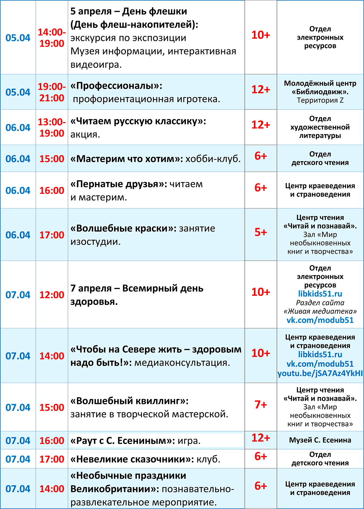 Дорогие посетители, знакомьтесь с программой мероприятий с 5 по 11 апреля