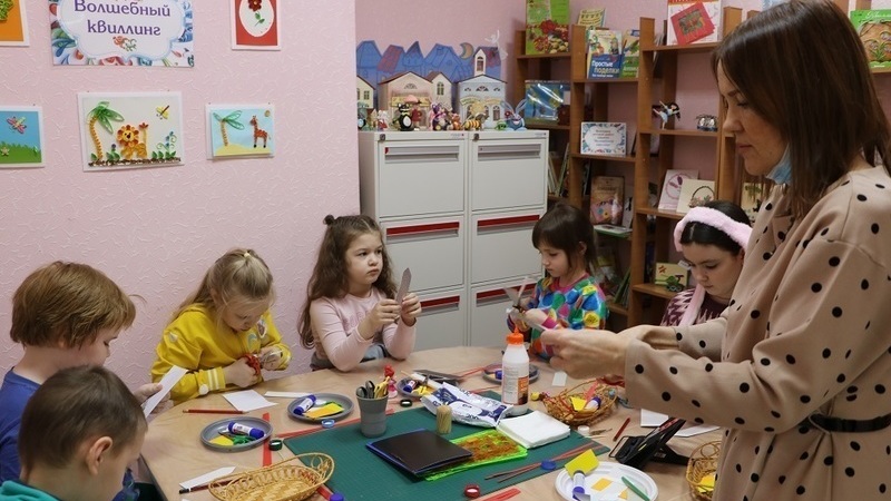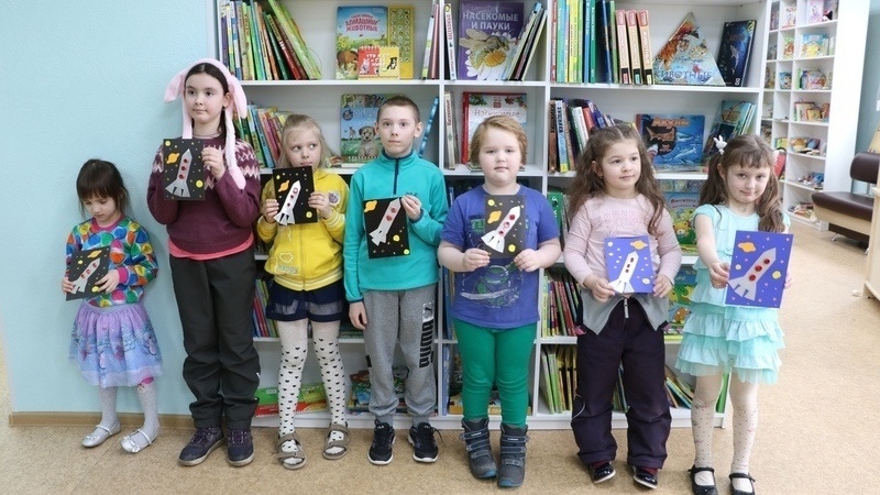 В начале мероприятия библиотекарь познакомила ребят с историей освоения космоса, рассказала о первом полете человека в космическое пространство, показала красивые книги о планетах и звездах. Затем участники мастер-класса приступили к изготовлению открытки, на которой изображена ракета, летящая в космос. Поделка выполнялась в технике аппликации и квиллинг. Юные рукодельники работали с увлечением и интересом, в результате открытки у всех получились аккуратные и красивые.