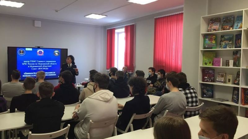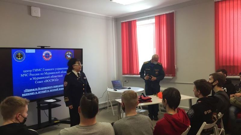 На встречу пришли студенты Мурманского строительного колледжа и волонтеры. Председатель Мурманского областного совета «ВОСВОД» Ситник Галина Петровна и сотрудник центра Государственной инспекции по маломерным судам Главного управления МЧС России по Мурманской области Городилов Евгений Владимирович рассказали о правилах поведения на водоемах во время весеннего таяния льда.