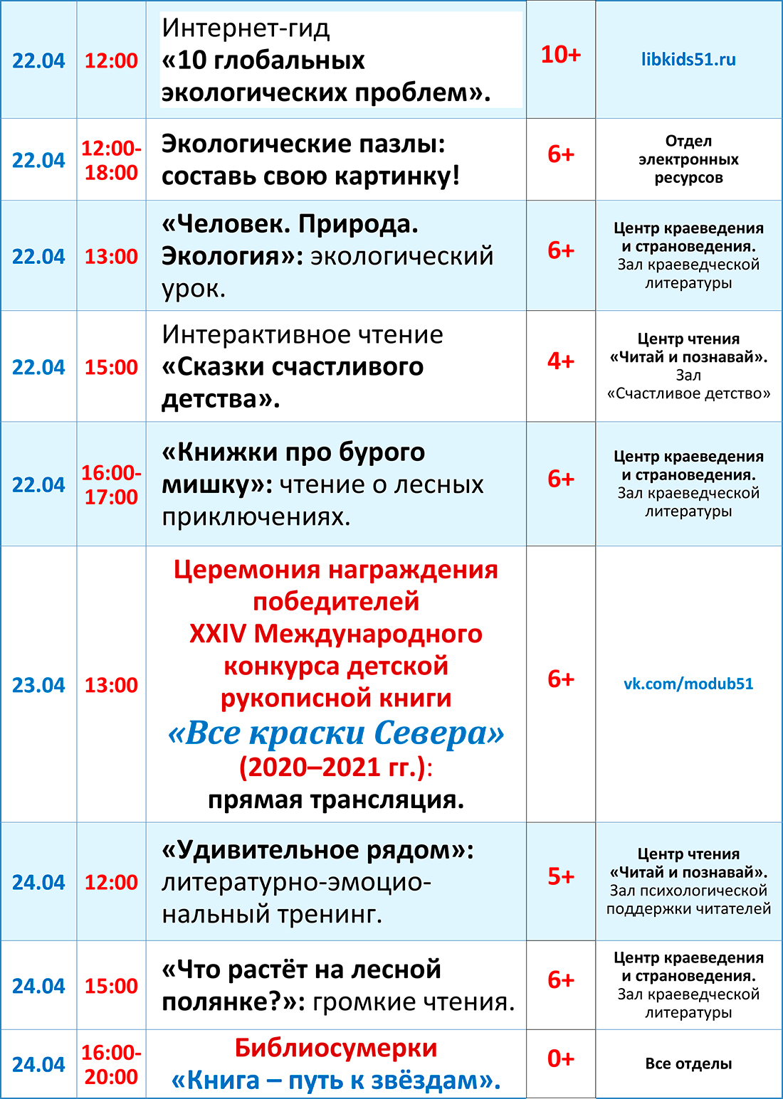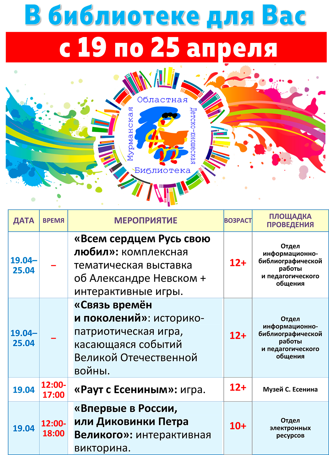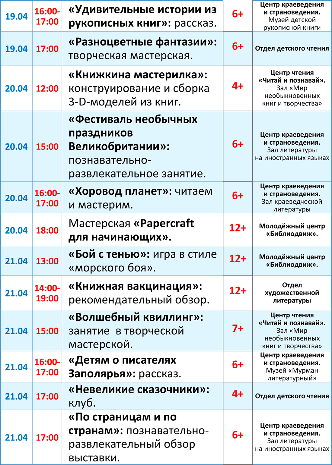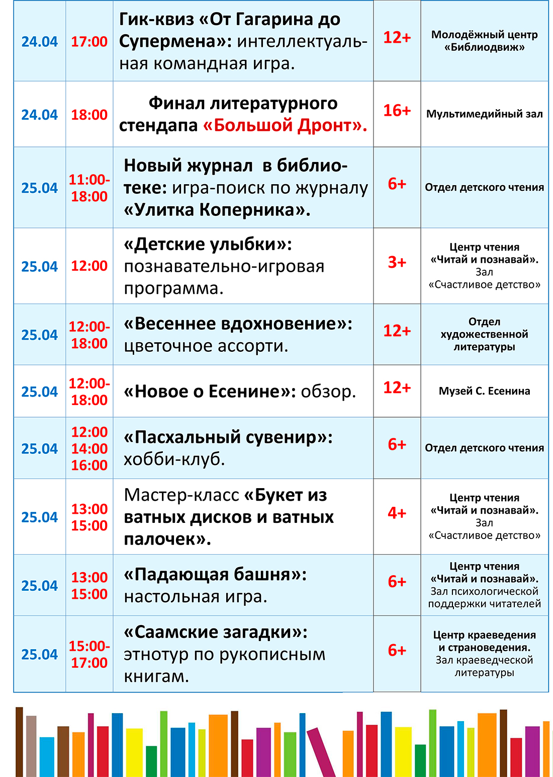 Дорогие посетители, знакомьтесь с программой мероприятий с 19 по 25 апреля