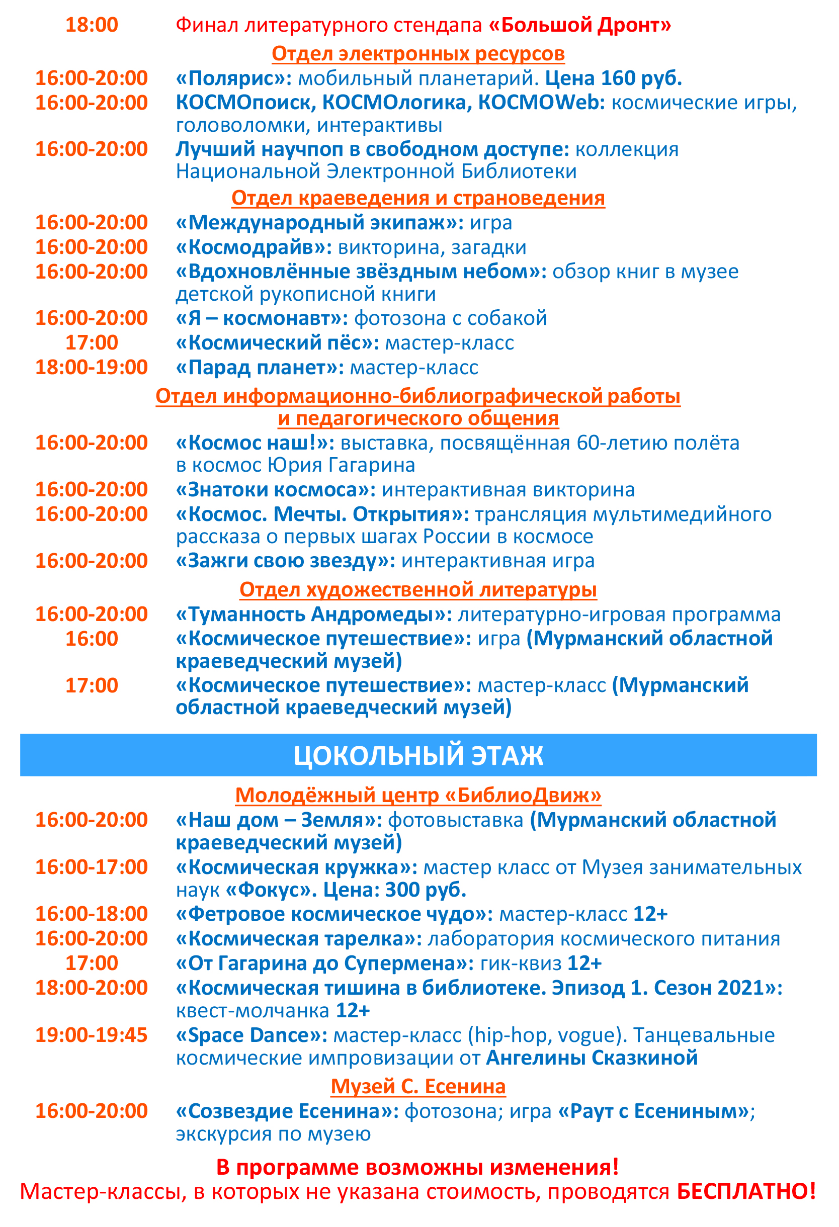 В этот раз они пройдут под девизом «Книга – путь к звездам» и будут посвящены 60-летию полета в космос Юрия Гагарина и празднованию Года науки и технологий.