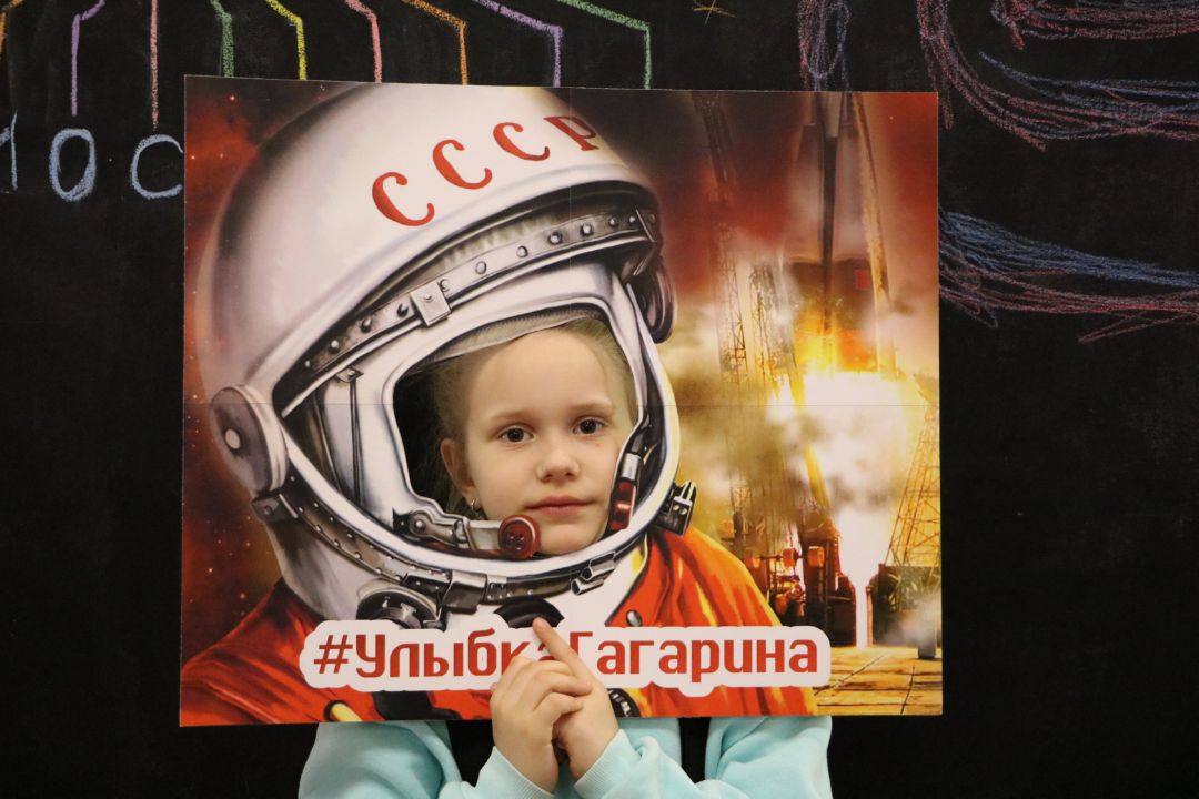 В холле на втором этаже проходил фоточеллендж «Улыбка Гагарина». И взрослые и дети активно принимали в нем участие.