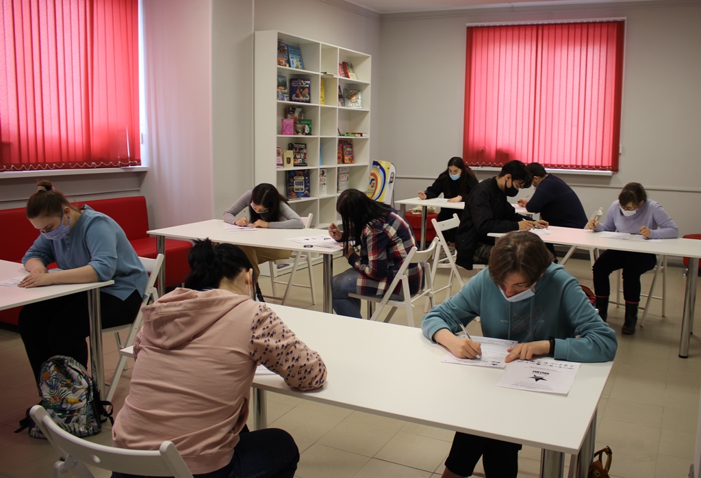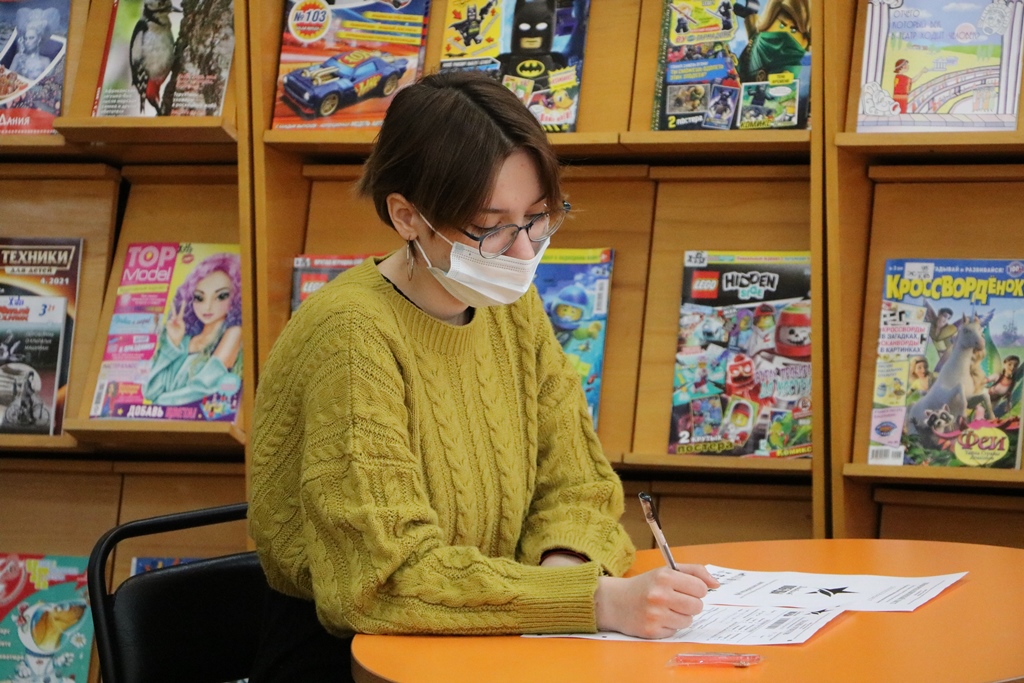 На территории отдела электронных ресурсов, в залах молодежного центра «БиблиоДвиж» и в отделе детского чтения были созданы все условия для комфортного написания диктанта.