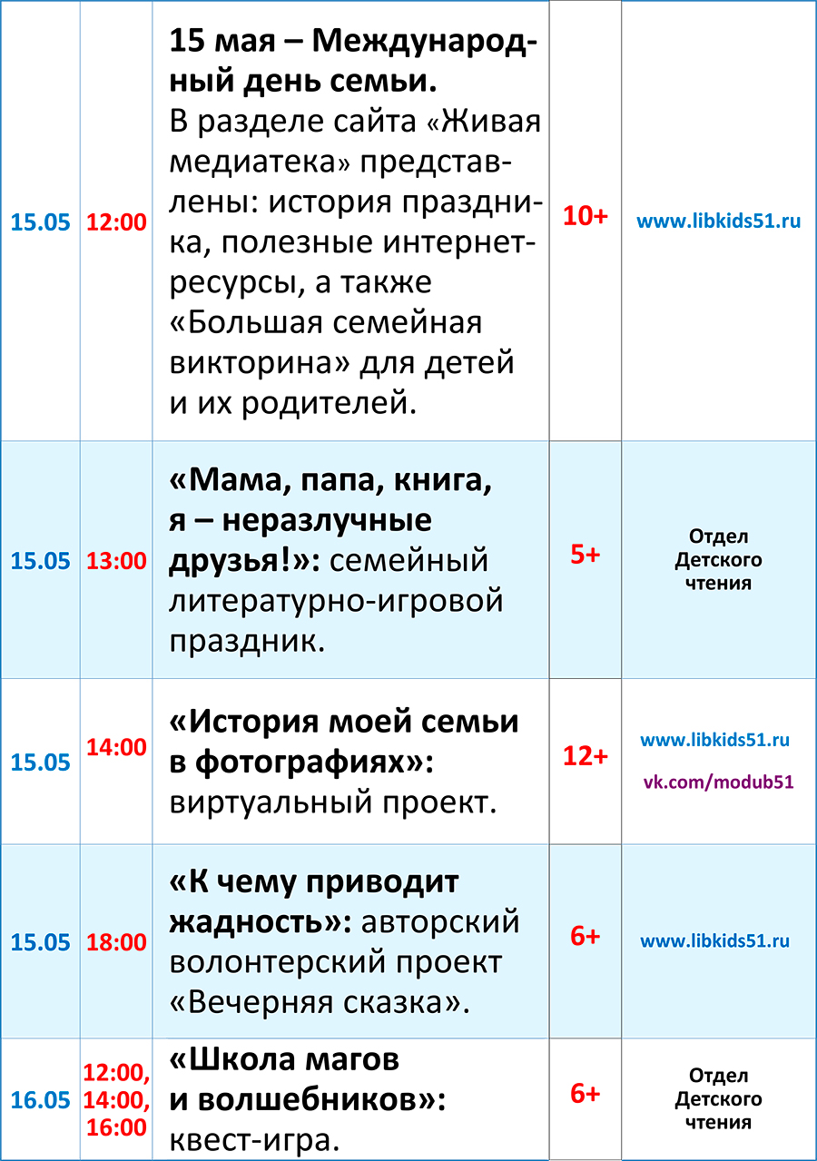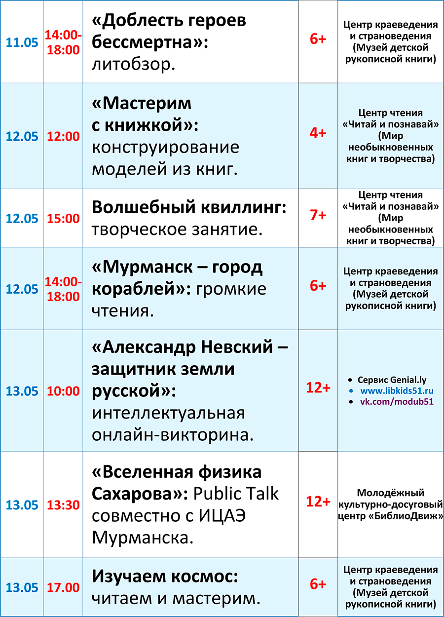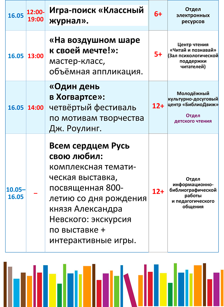 Дорогие посетители, знакомьтесь с программой мероприятий с 10 по 16 мая