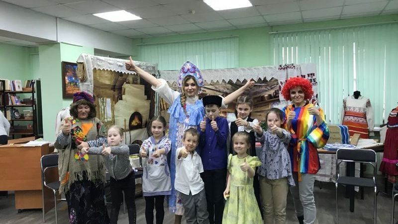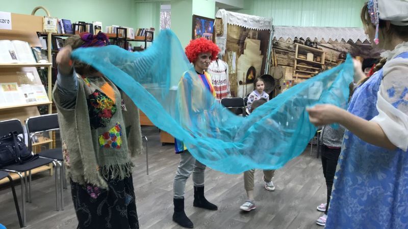 Вместе с гостями литературные герои из русских народных сказок пытались найти средство, чтобы развеселить Царевну Несмеяну: принимали участие в различных конкурсах и русских забавах, собирали из кубиков иллюстрации к сказкам, играли в русские народные игры, танцевали, устроили импровизированный оркестр.
