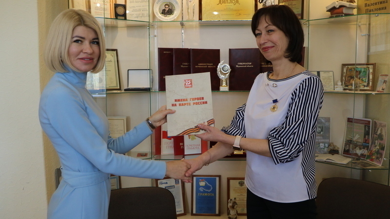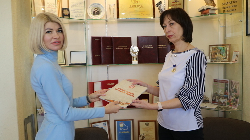 Вручила его директору библиотеки Наталье Владимировне Феклистовой руководитель Управления Росреестра по Мурманской области Анна Сергеевна Бойко.