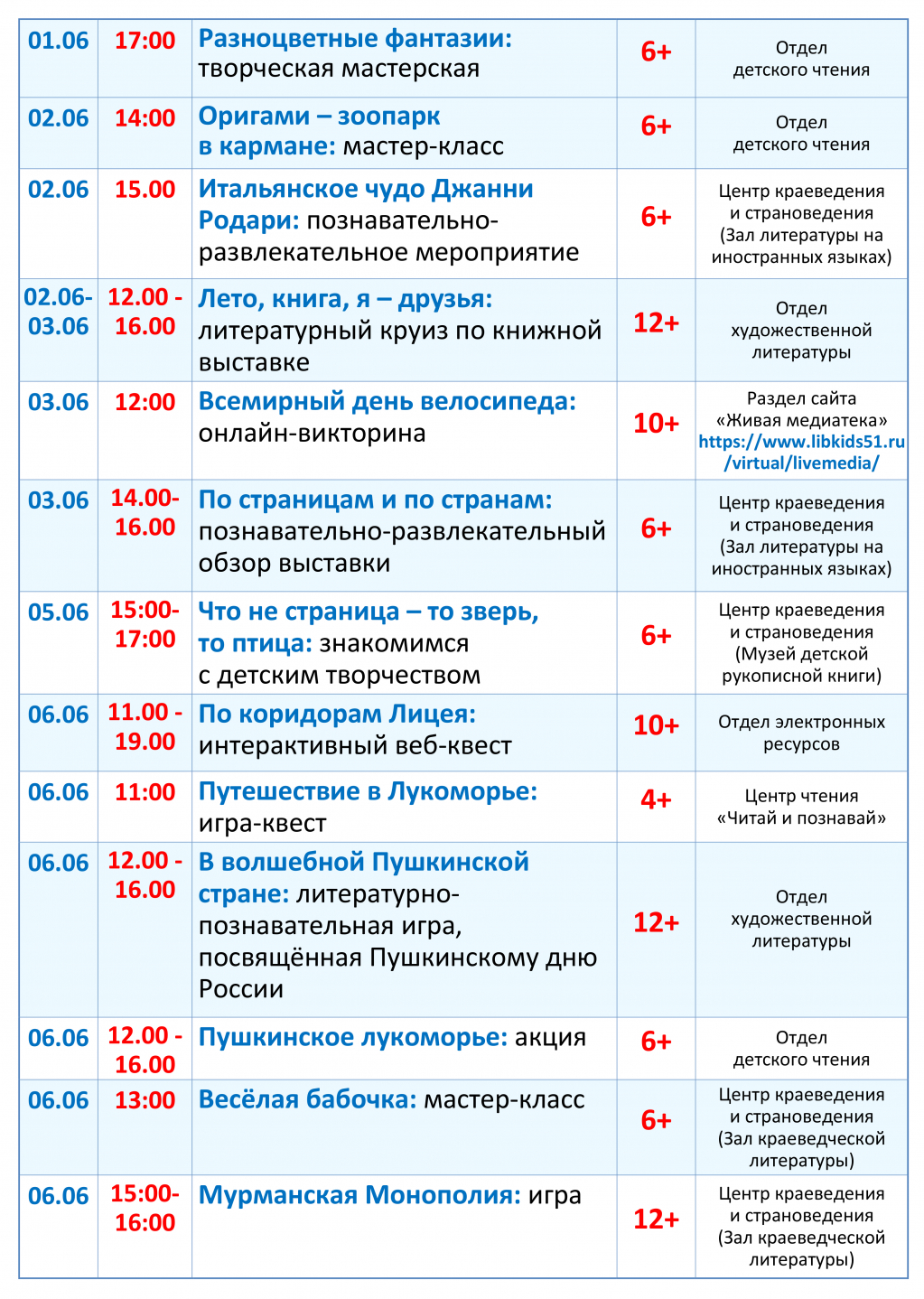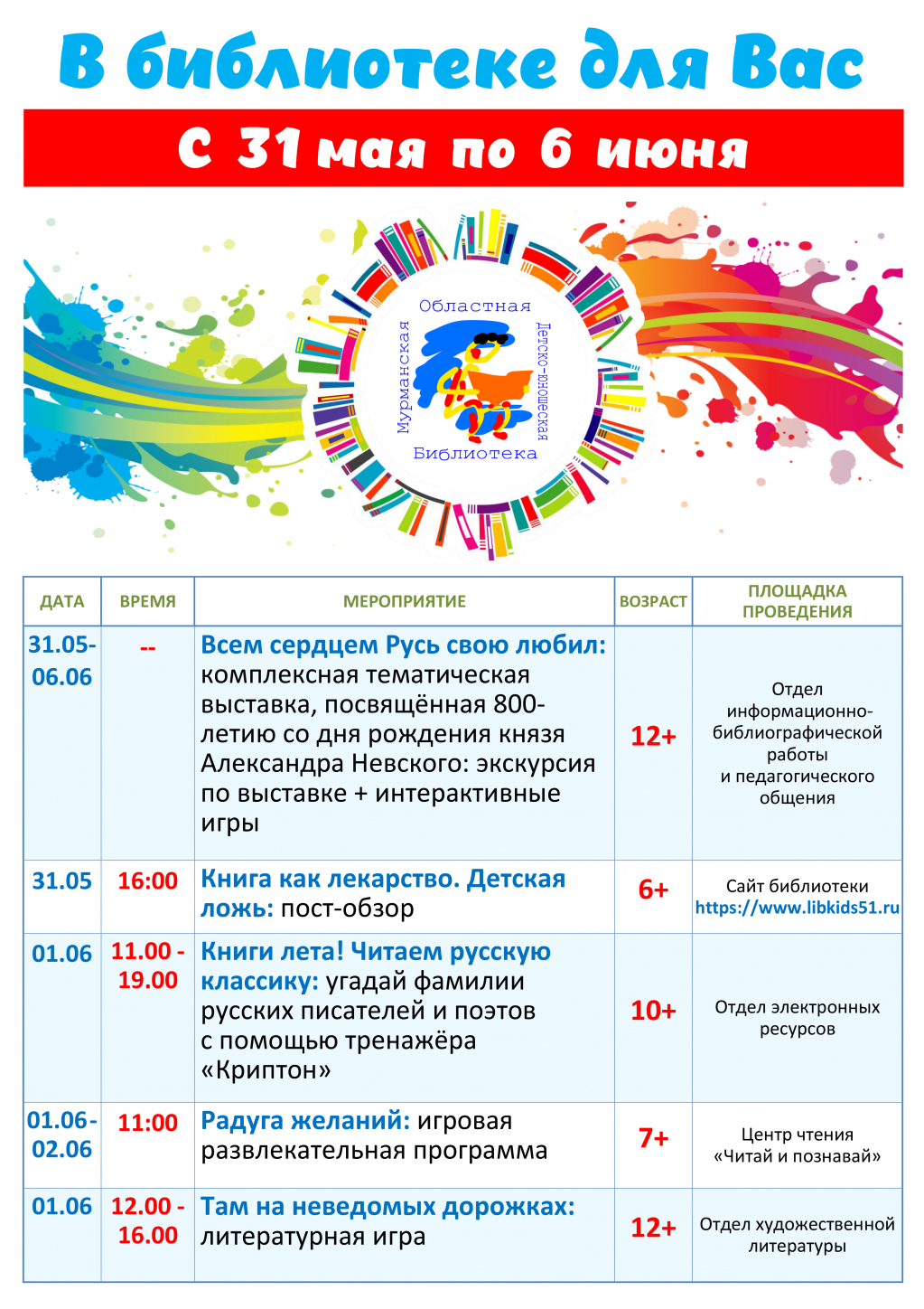 Дорогие посетители, знакомьтесь с программой мероприятий с 31 мая по 6 июня