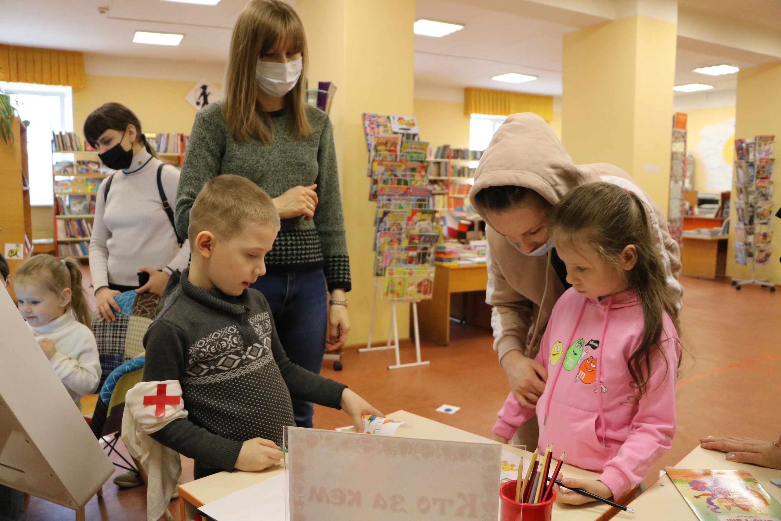 В отделе художественной литературы все желающие с большим интересом выполняли задания, подготовленные на разный возраст: отгадывали предметы из черного ящика и с помощью ключевых слов определяли произведение.