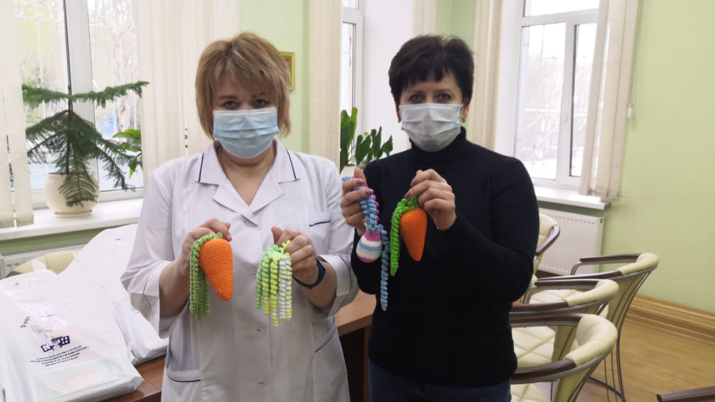В этом году к традиционной акции присоединились наши друзья – благотворительный клуб «28 петель Мурманск». Клуб вяжет и безвозмездно передает в Мурманский областной перинатальный центр шерстяные носочки, шапочки, жилетки, пледы для малышей-торопыжек, так ласково называют деток, родившихся раньше срока. Рукодельницы приготовили свой подарок родившимся малышам – игрушку-комфортер. Вязанные «осьминожки» благотворно влияют на нервную систему и стимулируют психоэмоциональное развитие ребёнка, дают ему ощущение комфорта и защищенности.