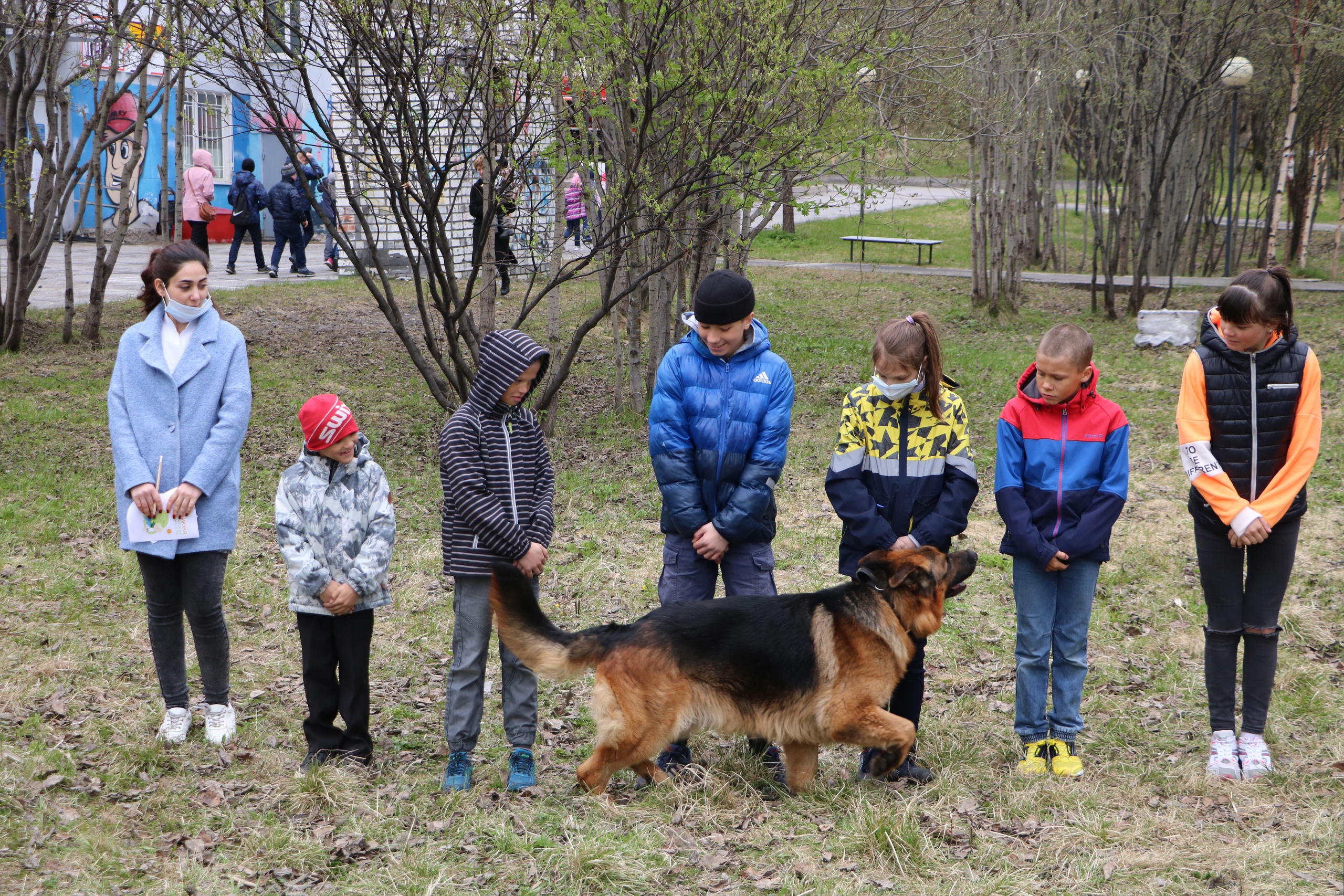 с большим интересом смотрели показательное выступление собак и кинологов.