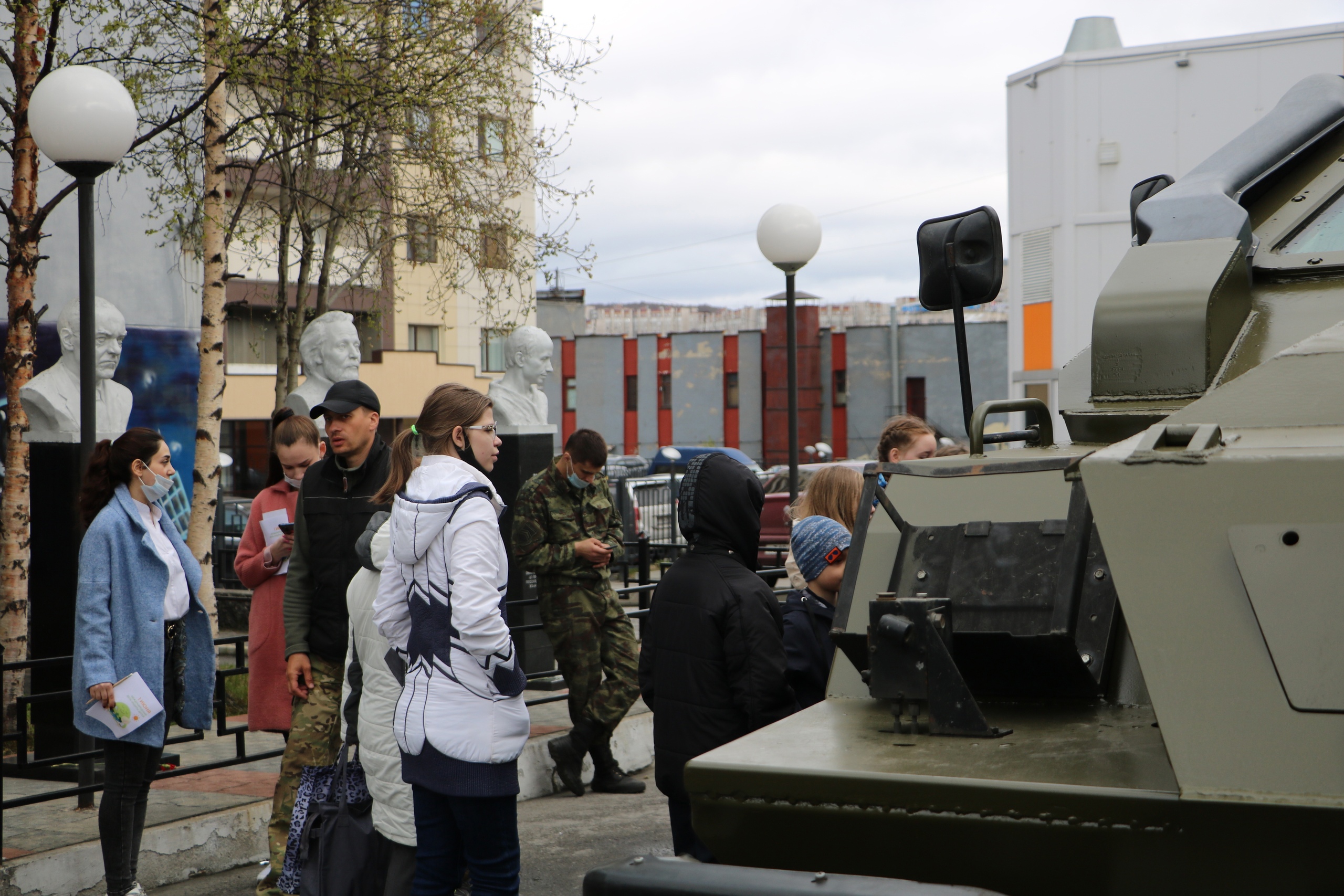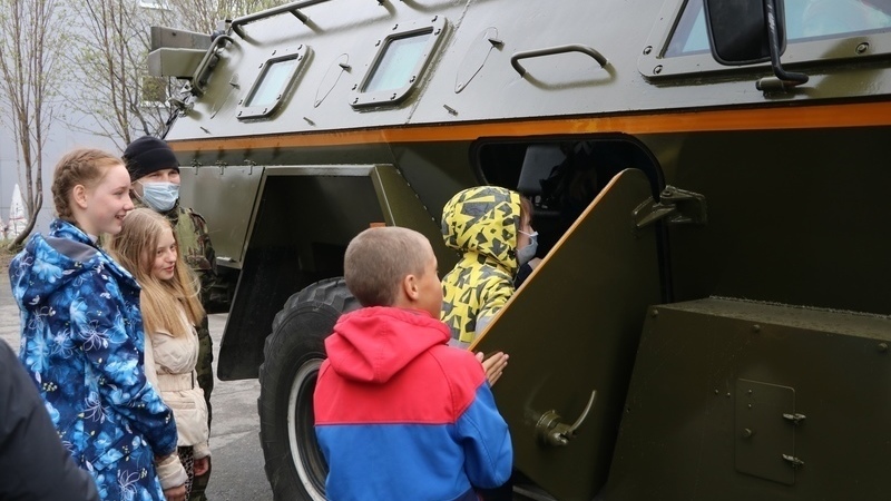 Немного настораживали автомобили техники специального назначения: пожарный автомобиль, БТР, а также сотрудники кинологической службы УФСИН с собаками. Но все объяснялось очень просто – стартовала ежегодная региональная акция, посвященная Дню защиты детей, которую организовали и провели Центр по профилактике правонарушений несовершеннолетних при поддержке Министерства образования и науки Мурманской области.