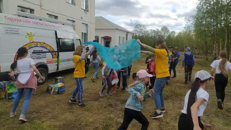 В летнем оздоровительном лагере, организованном на базе Средней общеобразовательной школы № 7 имени Ю. А. Гагарина, сотрудники Мурманской областной детско-юношеской библиотеки имени В. П. Махаевой провели для юных жителей поселка настоящий праздник – интерактивную программу «Детство – это мы с тобой!».