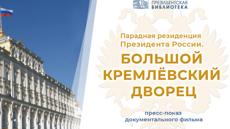 В преддверии Дня России, 10 июня 2021 года, в 14:00, в Президентской библиотеке имени Б.Н. Ельцина Управления делами Президента Российской Федерации состоится пресс-показ фильма «Парадная резиденция Президента России. Большой Кремлёвский дворец». Документальная лента создана при поддержке Управления делами Президента Российской Федерации, Управления пресс-службы и информации Президента Российской Федерации и Федеральной службы охраны Российской Федерации.
