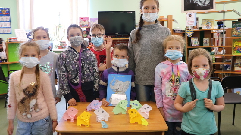 Перед тем как приступить к созданию фигурки сотрудник отдела познакомила детей с книгой Леонида Агутина «Я слон» и рассказала интересные факты об этом животном. Затем каждый выбрал себе лист бумаги понравившегося цвета и смастерил слоника в технике простого оригами, которого ребята добавят в свою коллекцию.