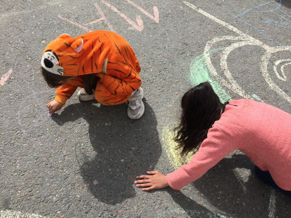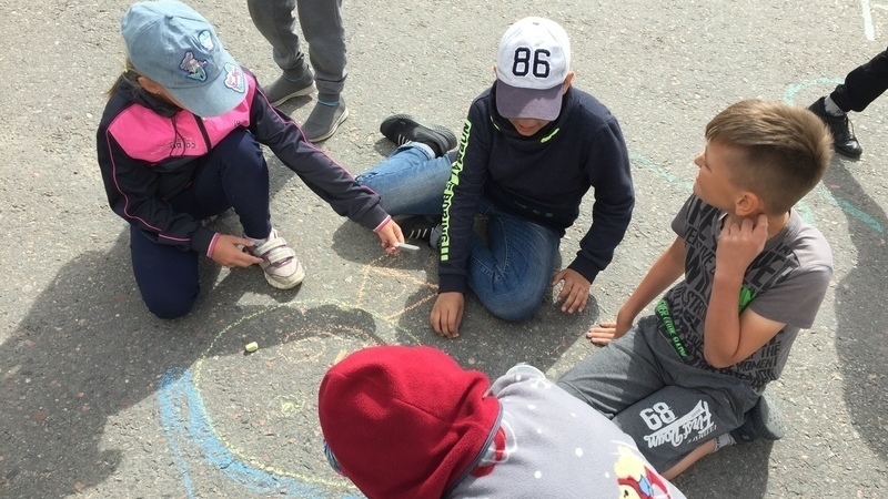 Ребята разучили новые танцы, «полетали» на парашюте, а также украсили своими яркими летними рисунками площадку перед зданием школы.