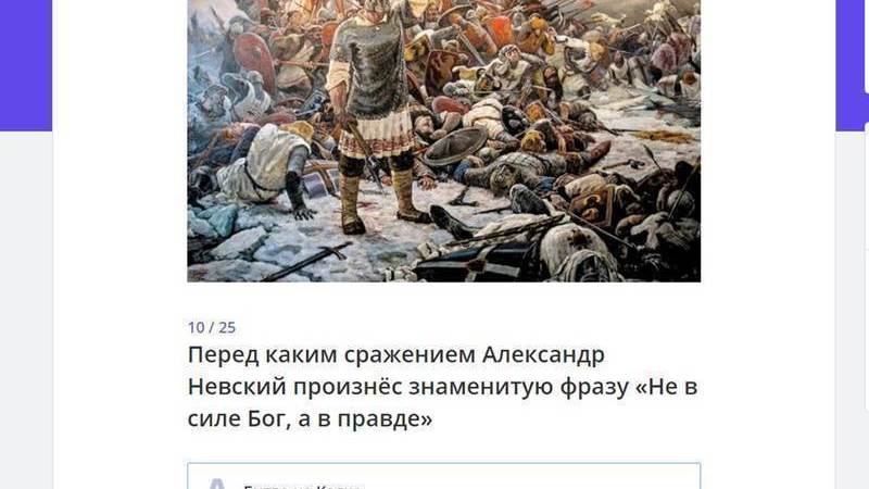 23 июля, в день памятной даты военной истории России, когда в 1240 году русские воины под командованием двадцатилетнего князя Александра Ярославича одержали победу над шведами в Невской битве, состоялся онлайн-квиз, посвящённый ратным подвигам и фактам биографии полководца.